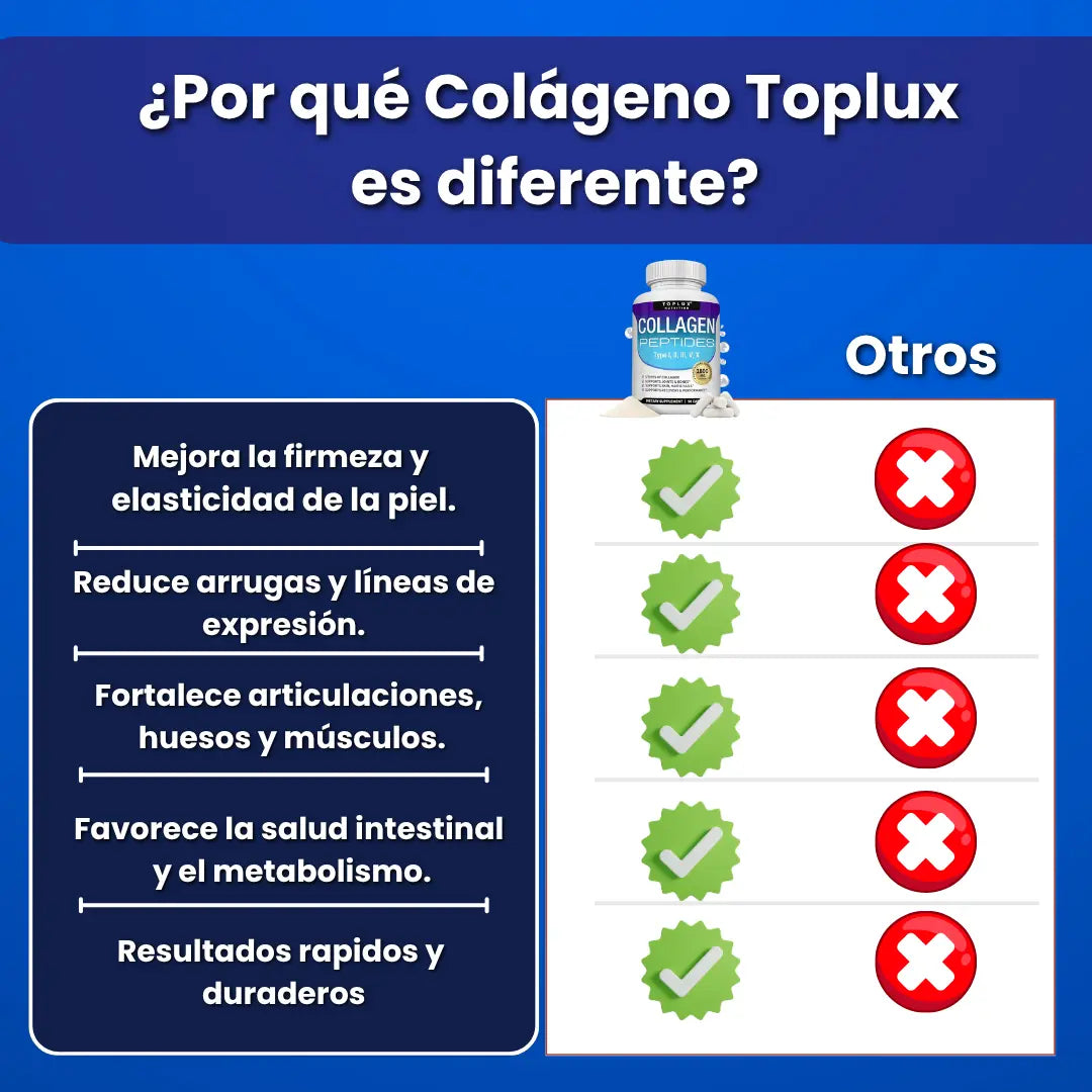 No contiene gluten ni conservantes artificiales, y es seguro para uso diario. Aporta los nutrientes esenciales que tu cuerpo necesita para mantener una piel sana, articulaciones fuertes y un aspecto rejuvenecido.